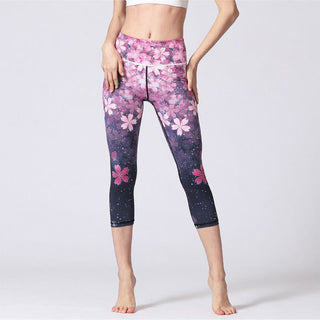 Buddha Gift Cherry Blossoms Sakura Lines Print Sports Yoga Cropped Leggings Women's Yoga Capri Pants