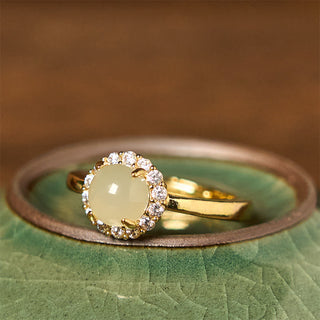 Buddha Gift Natural Hetian Jade Egg Copper Open Luck Prosperity Ring