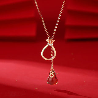 Buddha Gift Red Agate Chalcedony 925 Sterling Silver Gourd Lucky Bag Confidence Necklace Pendant