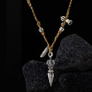 Buddha Gift Tibetan Handmade 925 Sterling Silver Dorje Vajra Om Mani Padme Hum Feather Strength Necklace Pendant