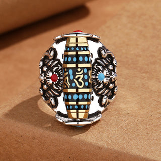 Buddha Gift Tibetan Om Mani Padme Hum Garuda Dzi Bead Pattern Peace Rotatable Ring