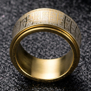 Buddha Gift Tibetan Seal Script Golden Light Mantra Titanium Steel Spinner Balance Ring