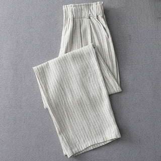 Buddha Gift Vertical Striped Cotton Linen High Waist Wide Leg Pants With Pockets