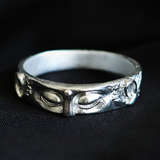 Buddha Gift 999 Sterling Silver Dragon Carved Pattern Protection Success Ring