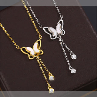 Buddha Gift 999 Sterling Silver Tridacna Stone Butterfly Calm Necklace Pendant