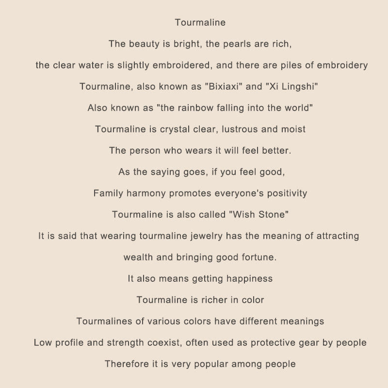 Tourmaline is a gem full of energy. The effect of tourmaline varies from body to soul. According to the color type, the common ones are black tourmaline, pink tourmaline, rubellite, green tourmaline, yellow tourmaline, indicolite and dravite, etc.