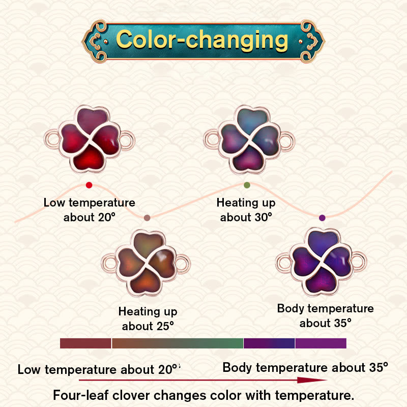 Discover the beauty and symbolism of our Buddha Gift 925 Sterling Silver Color-changing Four Leaf Clover Red String Bracelet. Handcrafted with care, it combines the protective powers of red string and sterling silver. Embrace luck, faith, and connection while enjoying the mesmerizing color-changing feature.