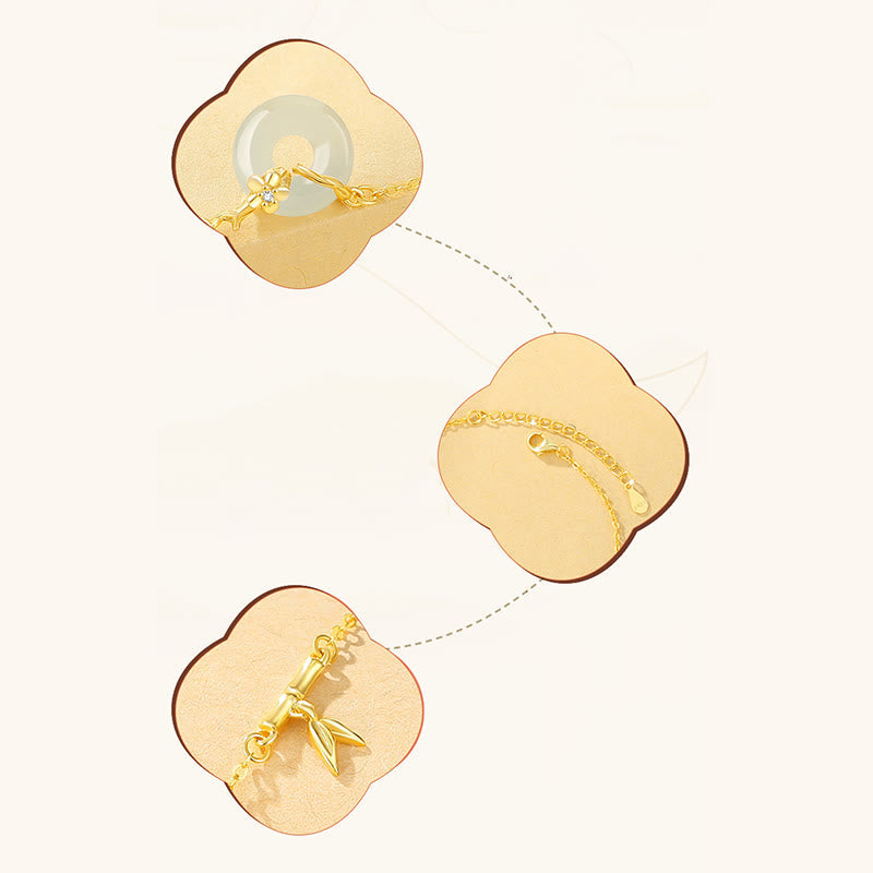 Buddha Gift 925 Sterling Silver Hetian Jade Chalcedony Peace Buckle Bamboo Leaf Prosperity Chain Bracelet Bracelet BS 4