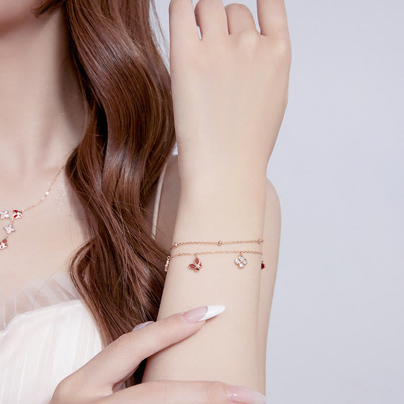 Red Agate Butterfly set features red agate, tridacna stone, butterfly, and four-leaf clover motifs, symbolizing calm and good luck. This set includes a bracelet and a necklace pendant, crafted from 925 sterling silver. The combination of stones and symbols promotes emotional balance and tranquility, making this set perfect for those seeking inner peace and positive energy on their spiritual journey.💕