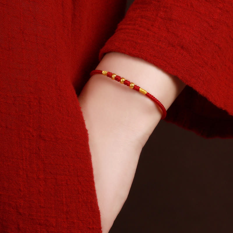 In lineages of Tibetan Vajrayana Buddhism, tying a cord or string around the wrist is common during ceremonies. Traditionally, the Lama blesses the string and then ties a knot and imbues it with a mantra. Similar to other traditions, it's said that these red cords bring luck and offer protection.