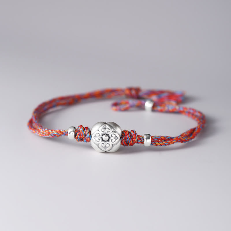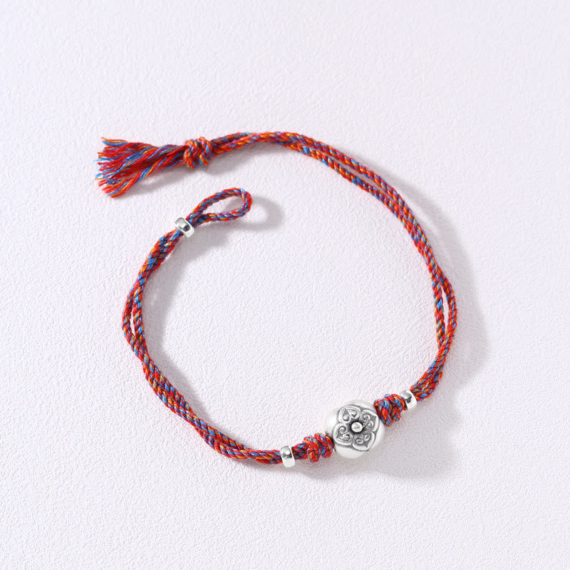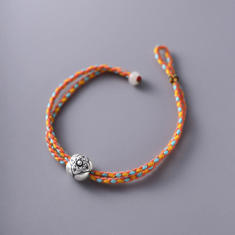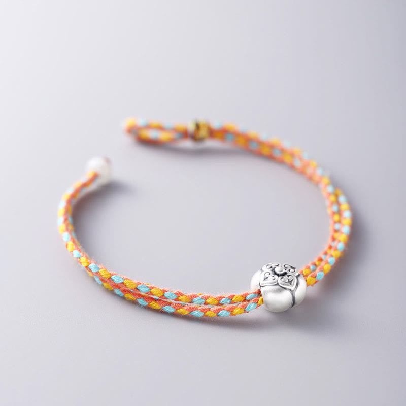 Buddha Gift 999 Sterling Silver Persimmon Luck Multicolored Braided Bracelet