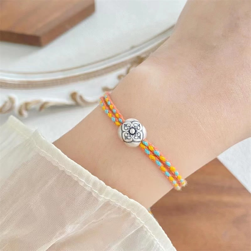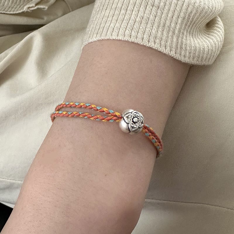 Buddha Gift 999 Sterling Silver Persimmon Luck Multicolored Braided Bracelet Bracelet BS 1