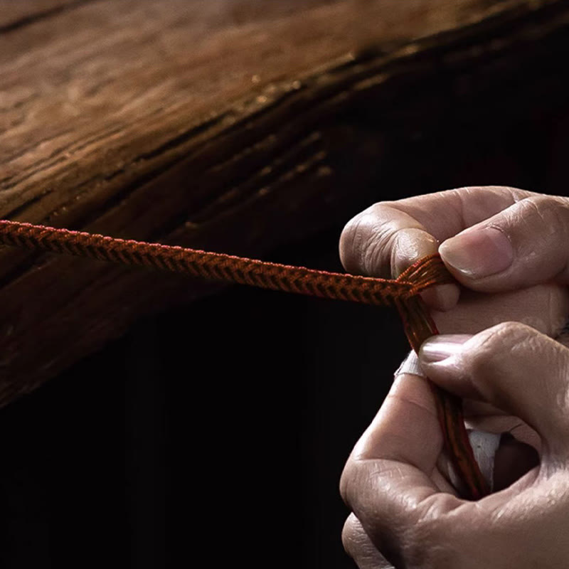 The eight-strand braid is evolved from the four-strand braid, the threads are intertwined, mutual generation and restraint, and samsara rotation, symbolizing life's love and hatred, joy, anger, sorrow, and joy.