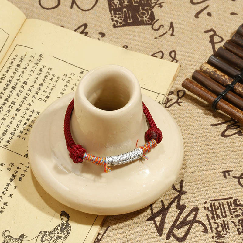 In lineages of Tibetan Vajrayana Buddhism, tying a cord or string around the wrist is common during ceremonies. Traditionally, the Lama blesses the string and then ties a knot and imbues it with a mantra. Similar to other traditions, it's said that these red cords bring luck and offer protection.