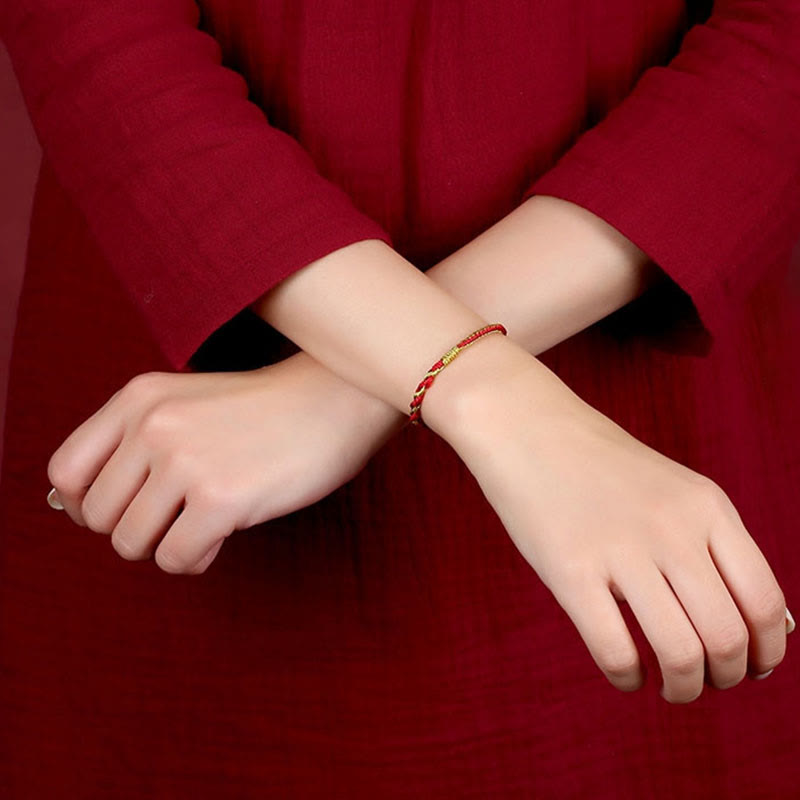 In lineages of Tibetan Vajrayana Buddhism, tying a cord or string around the wrist is common during ceremonies. Traditionally, the Lama blesses the string and then ties a knot and imbues it with a mantra. Similar to other traditions, it's said that these red cords bring luck and offer protection. In ancient Chinese legend, the Red Thread of Fate is - invisible and ties all those whose lives will intertwine together. It is governed by the Chinese God of marriage, Yue Lao, as it's primarily associated with the link between two people destined to be married. Throughout history and across philosophies, the red string has been worn for protection, faith, good luck, strength, and connection.