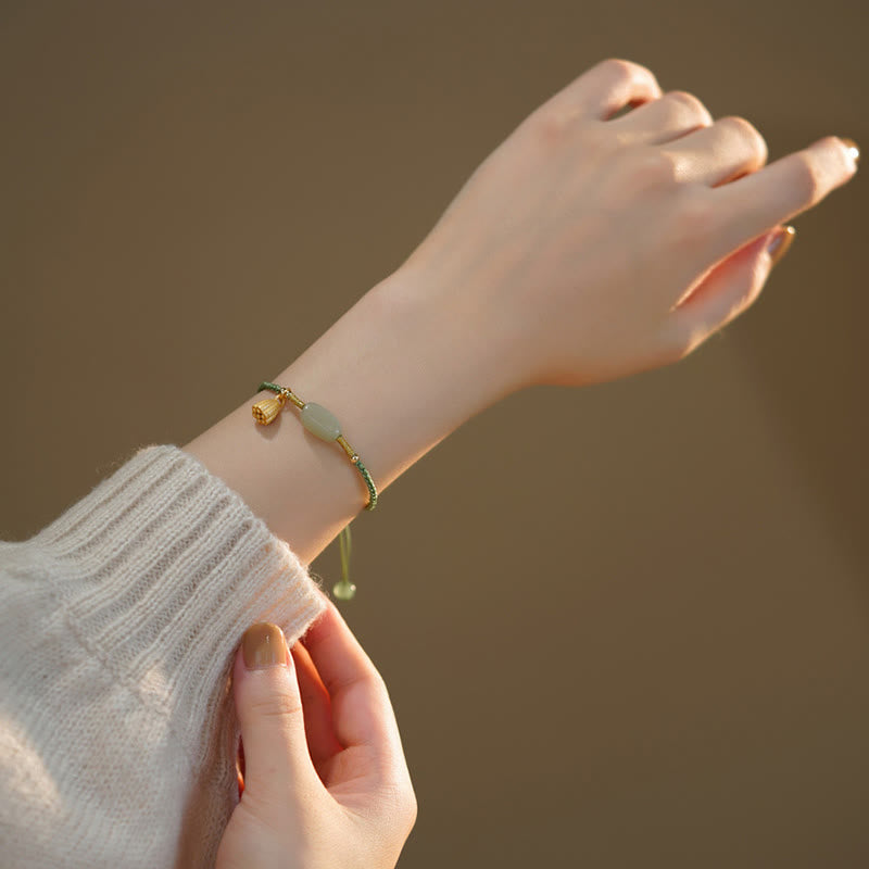 Buddha Gift Lotus Jade Peace Buckle Bead Luck Happiness Charm String Bracelet Bracelet BS 1