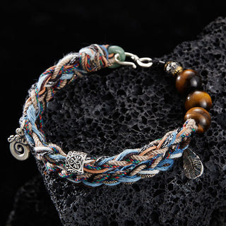 Buddha Gift 925 Sterling Silver Tiger's Eye Colorful Cotton Rope Handmade Willpower Bracelet