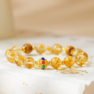 Buddha Gift 925 Sterling Silver Gourd Fu Character Citrine Tiger Eye Prosperity Bracelet