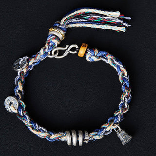 Buddha Gift 925 Sterling Silver Chinese Zodiac Natal Buddha Om Mani Padme Hum Luck Bell Braided String Bracelet