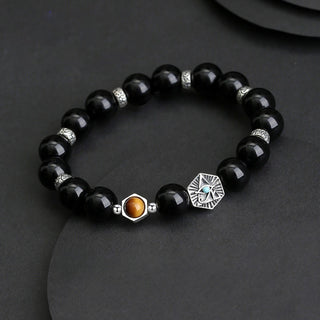 Buddha Gift 925 Sterling Silver Black Obsidian Tiger Eye Eye of Providence Purification Bracelet