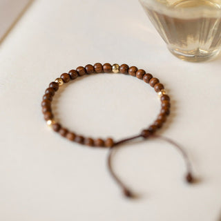 Buddha Gift 4mm Ultra-thin Sandalwood 14K Gold Plated Copper Beads Protection Bracelet