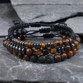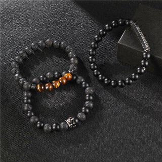 Buddha Gift 3Pcs Tiger Eye Lava Rock Protection Bracelet Set