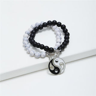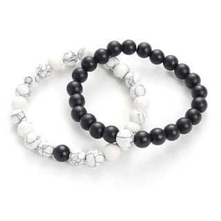 Buddha Gift 2pcs Natural Black Onyx White Turquoise Bead Yin Yang Couple Bracelet