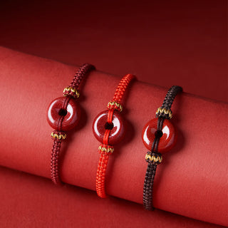 Buddha Gift Handmade Cinnabar Peace Buckle Safe and Healthy Charm Blessing String Bracelet Anklet