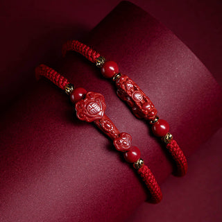 Buddha Gift Handmade Cinnabar Ruyi Handle Fu Character PiXiu Blessing Red String Braided Bracelet