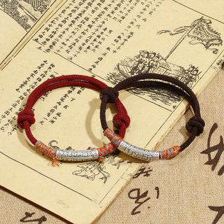 Buddha Gift Handmade Alloy Heart Sutra Protection Strength Rope Bracelet Anklet
