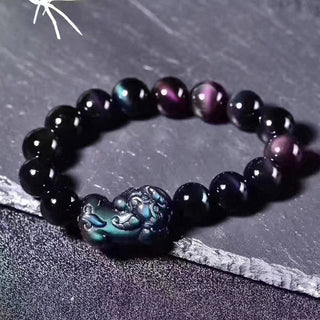 Buddha Gift FengShui PiXiu Rainbow Obsidian Healing Bracelet