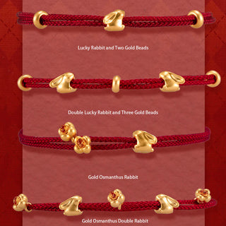 Buddha Gift 999 Gold Small Lucky Rabbit Osmanthus Design Handmade Luck Braided Rope Bracelet