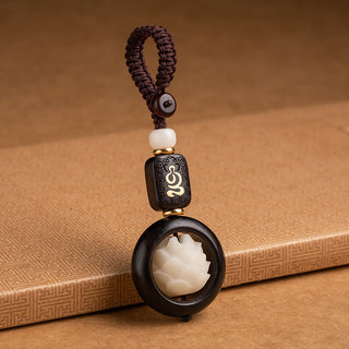 Buddha Gift Ebony Wood Bodhi Seed Lotus Enlightenment Key Chain Decoration