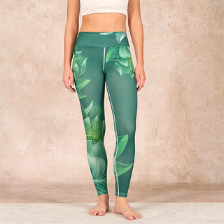 Buddha Gift Dark Green Lotus Flower Leaf Print Gym Fitness Leggings Women's Yoga Pants