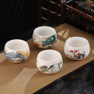 Buddha Gift Dragon Cicada Bamboo Deer Crane Lotus Plum Flower Ceramic Teacup Kung Fu Tea Cup Bowl 185ml
