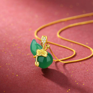 Buddha Gift Cyan Jade Gourd Lotus Leaf Abundance Pendant Necklace