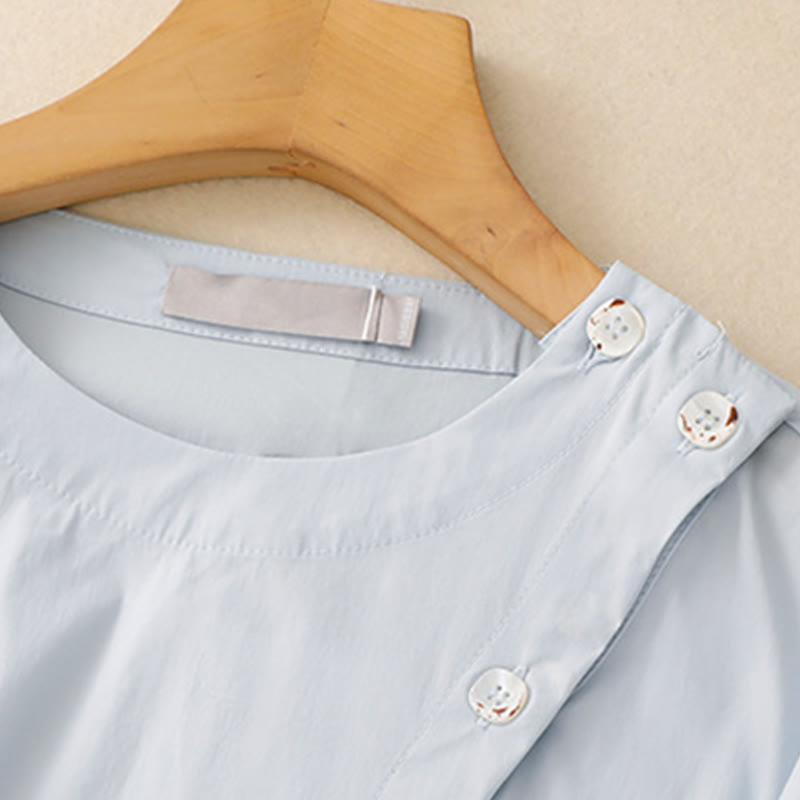 Buddha Gift 2pcs Irregular Button Design Shirt Skirt With Pockets Cotton Clothing Women's Set