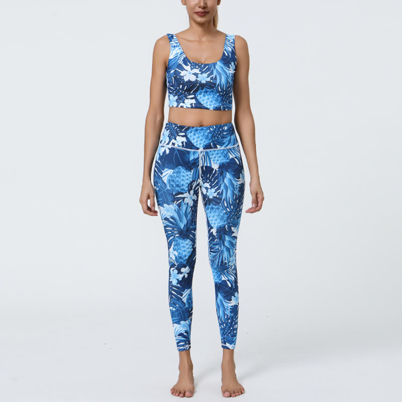 Pineapple Grass Leaves set includes a crop tank bra and high-waist leggings, both featuring vibrant pineapple and grass leaves prints. Crafted from flexible, breathable fabric, this 2-piece set ensures comfort and support during workouts. Ideal for yoga and fitness enthusiasts, it offers a unique blend of style and functionality, perfect for adding a touch of tropical flair to your exercise routine.💕