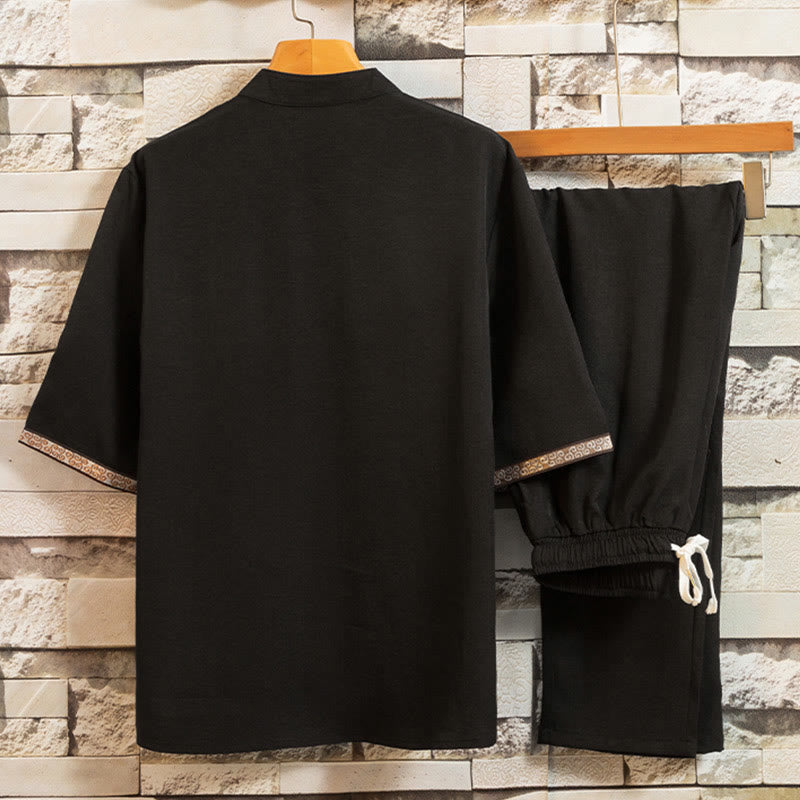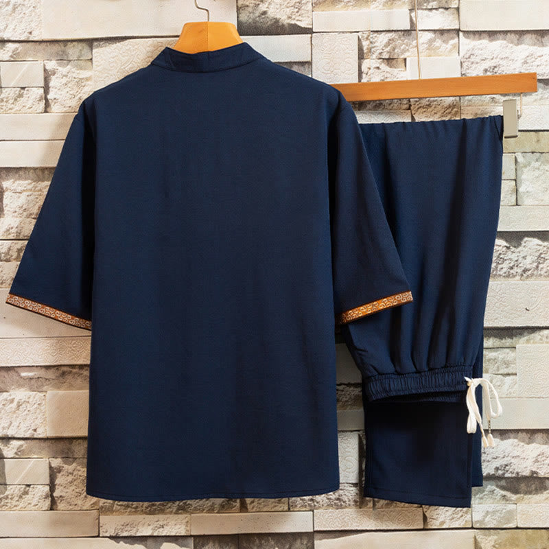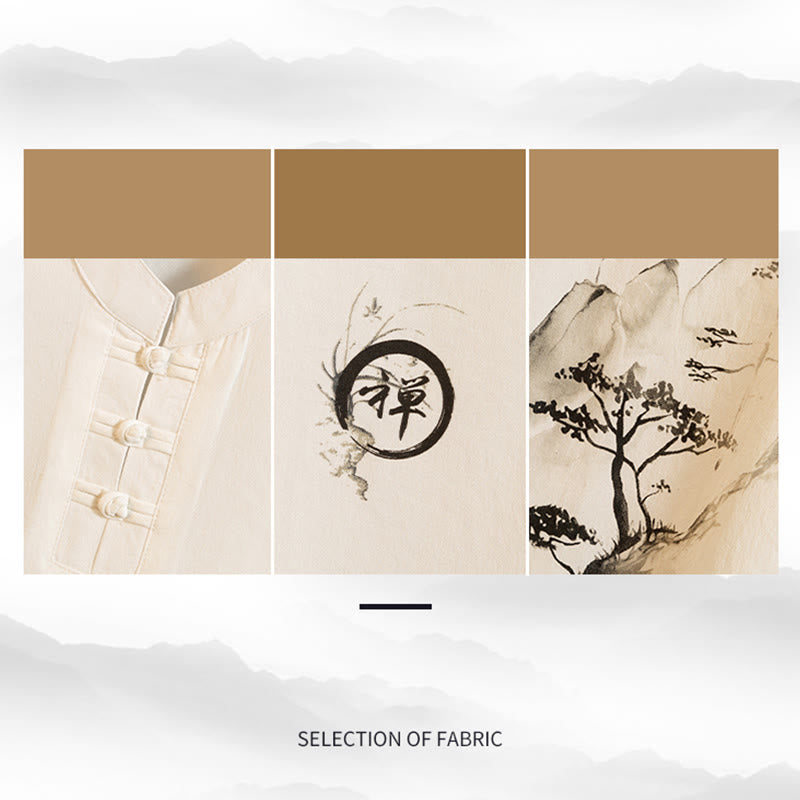 2Pcs Tree Pattern Cotton Linen set combines traditional charm with modern comfort. The short sleeve shirt features classic frog-buttons and a serene tree pattern, while the matching pants provide a cohesive look. Made from breathable cotton linen, this set is perfect for both casual wear and special occasions. Ideal for those who appreciate a blend of nature-inspired design and practicality.💕
