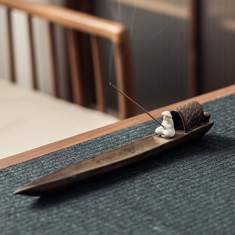 Buddha Gift Fisherman Zen Healing Brown Ceramic Stick Incense Burner Decoration