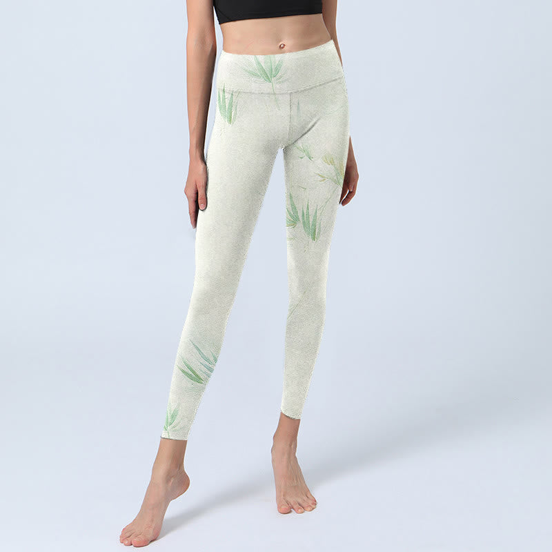 Green Bamboo Leaves Yoga Pants feature a serene bamboo leaf design on a white base, symbolizing resilience and growth. Crafted from flexible, breathable fabric, these leggings provide gentle support and comfort during yoga sessions or meditation practices. The green bamboo pattern inspires calmness, making these pants an ideal choice for those seeking a mindful and balanced practice.💕