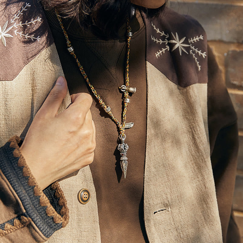 Buddha Gift Tibetan Handmade 925 Sterling Silver Dorje Vajra Om Mani Padme Hum Feather Strength Necklace Pendant