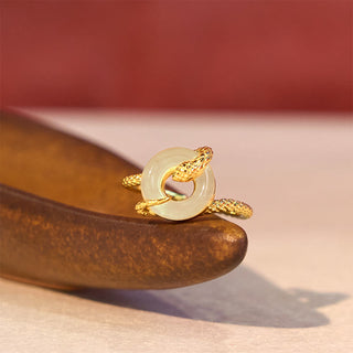 Buddha Gift Chalcedony Peace Buckle 925 Sterling Silver Golden Year Of The Snake Harmony Ring