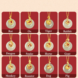 Buddha Gift Chinese Zodiac Hetian Jade 925 Sterling Silver Abundance Necklace Pendant