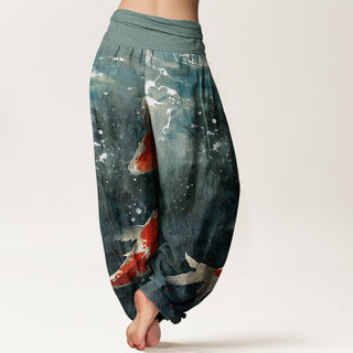 Buddha Gift Colorful Koi Fish Ocean Design Women's Elastic Waist Harem Pants