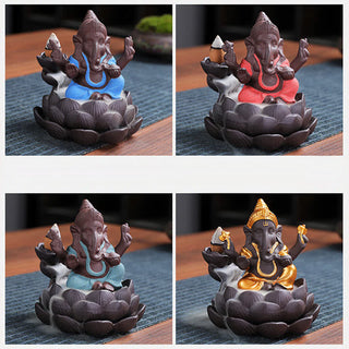 Buddha Gift Ganesh Elephant Purple Clay Backflow Smoke Fountain Protection Incense Burner