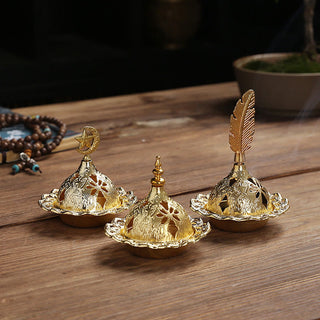 Buddha Gift Gold Gourd Star Feather Spiritual Meditation Mini Alloy Metal Incense Burner