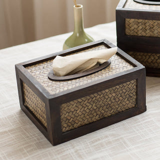 Buddha Gift Handmade Bamboo Woven Wood Tissue Box Wooden Tissue Holder Wipes Boxes Decoration
