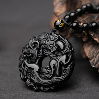 Buddha Gift Natural Black Obsidian PiXiu Oval Pattern Strength Necklace Pendant