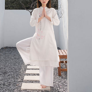 Buddha Gift 2Pcs Lotus Pattern Tai Chi Meditation Yoga Cotton Linen Clothing Top Pants Women's Set